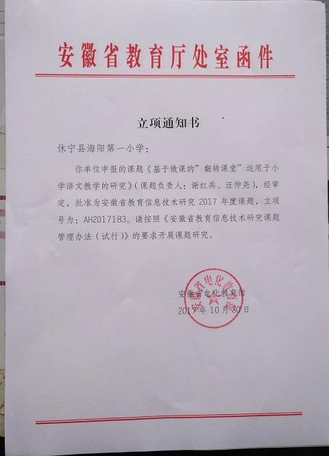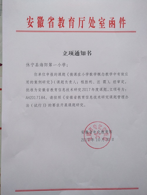 近日,学校收到了省电教馆寄来的课题立项通知书。