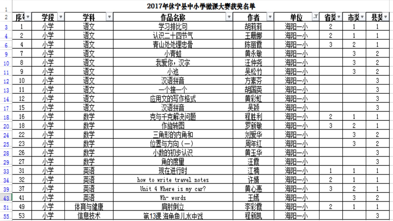 附: 2017年休宁县中小学微课大赛获奖名单.xlsx