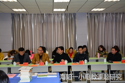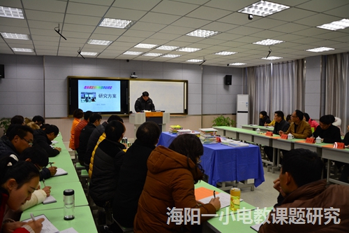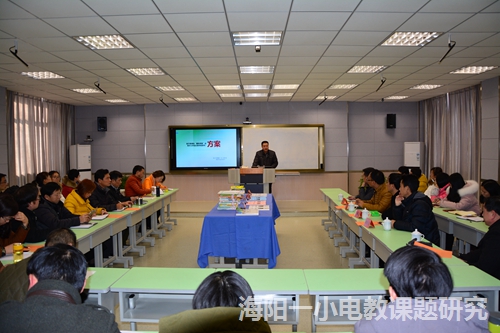 首先,课题负责人许婧、程新凯、程胜利、汪仲尧分别就《翻转课堂在小学高年级英语语法教学中的教学效果研究》、《在线课堂常态化教学的研究》、《微课在小学数学概念教学中有效应用的案例研究》、《基于微课的“翻转课堂”运用于小学语文教学的研究》四个课题的研究方案进行了详细的汇报。他们从课题研究的意义、国内外研究现状、研究目标、内容、步骤、人员分工、研究保障、预期成果等诸多方面对各自负责的课题进行了细致的解读。罗新敏老师代表课题组成员做表态发言。