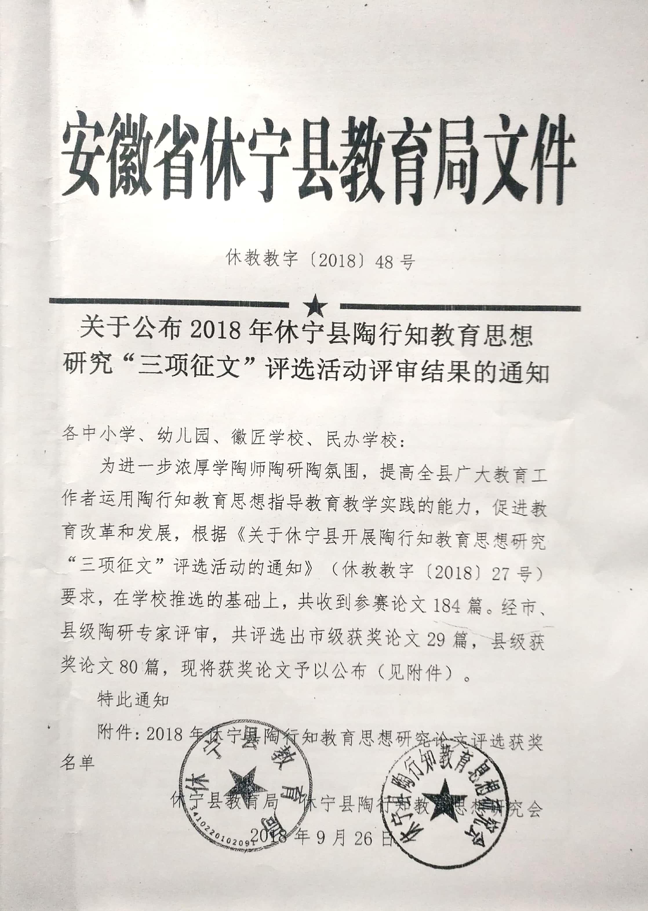 2018年休宁县陶行知教育思想研究论文评选获奖名单.xlsx