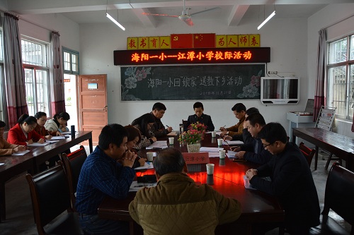 海阳一小校长、江潭小学校长分别介绍了各自学校的情况,并就教学教研、课题研究、青年教师培养等话题进行交流。