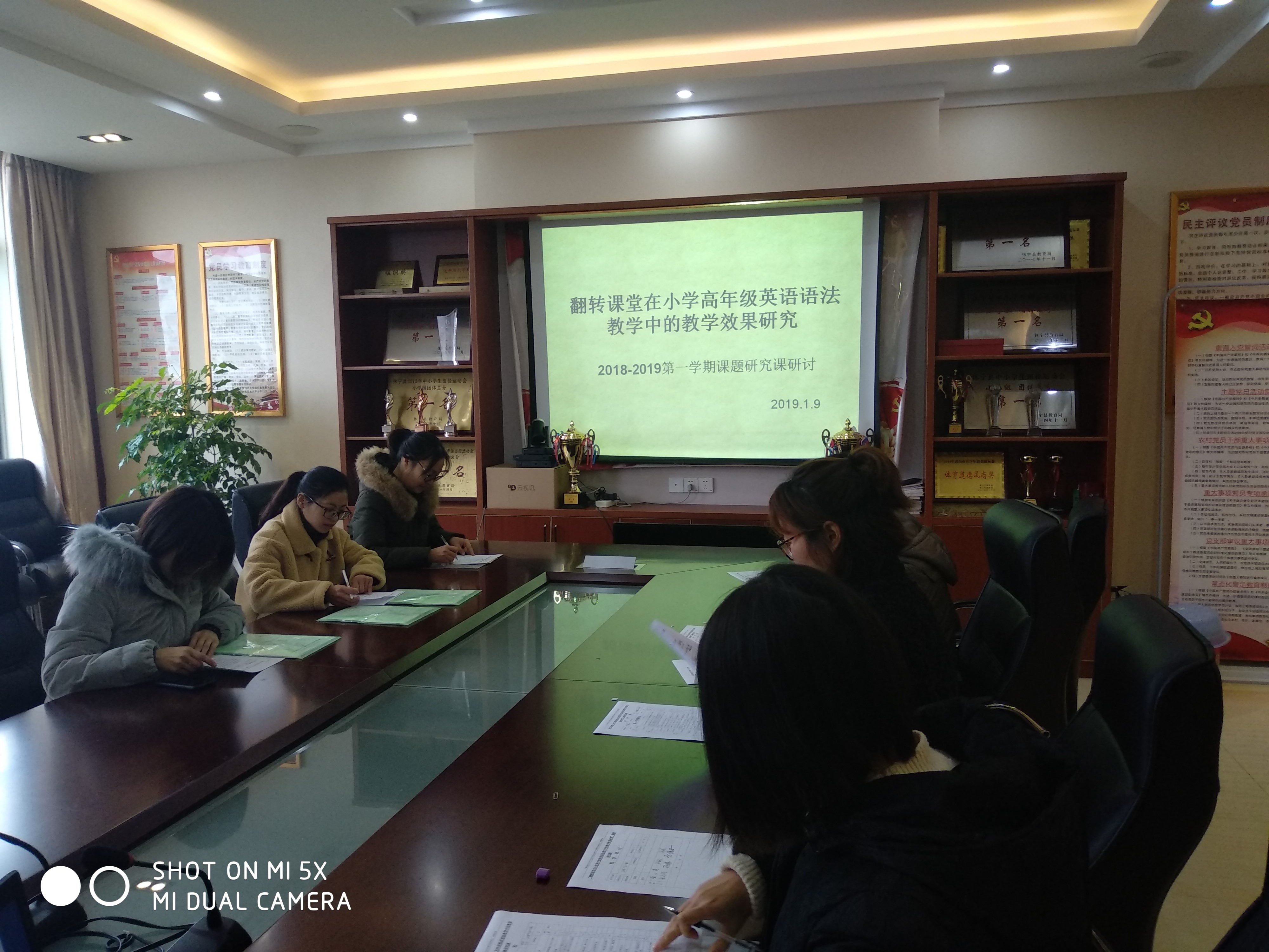 为了进一步探索信息技术环境下提高课堂教学效果的研究,2019年1月9日,我校英语组全体成员召开了翻转课堂在小学英语高年级英语语法教学中的教学效果研究研讨会。