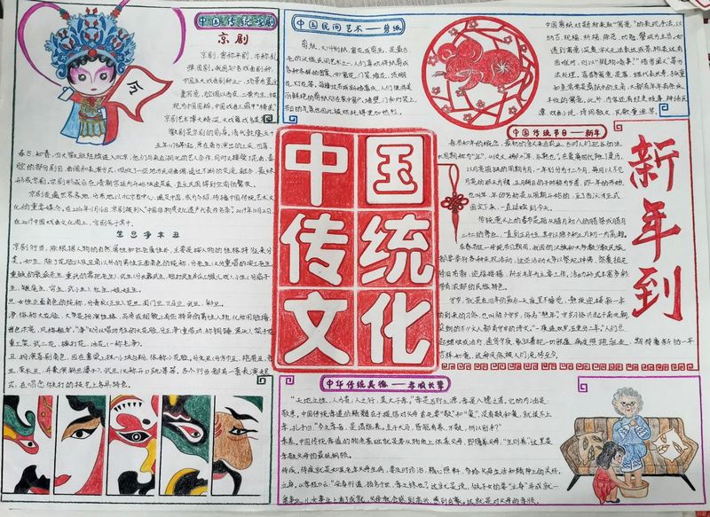 整个活动同学们参与热情很高,从主题选定到排版设计,从勾画报头到书写美术字,从版面美化到整体效果,人人紧扣主题,充分发挥了丰富的想象力和创造力,精心制作出了一幅幅富有创意,图文并茂、内容丰富的手抄报。在实践和创新过程中同学们对民族传统、民族意识、民族精神、民族文化加深了认知。