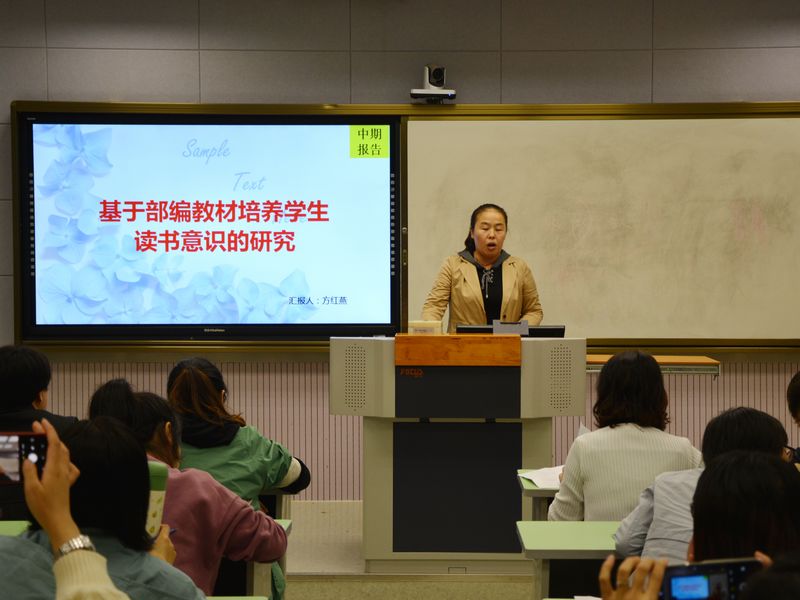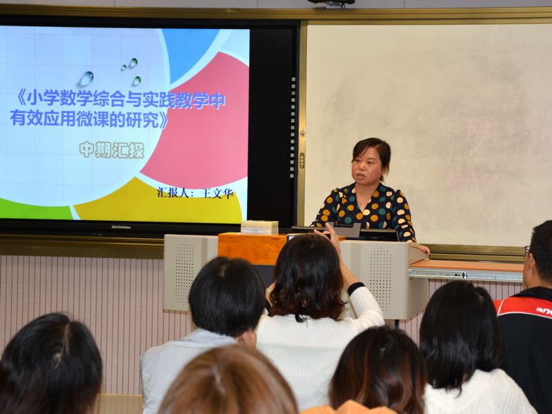 《核心素养理念下提升小学生口语交际能力的实践研究》课题组负责人方素芬代表课题组汇报课题结题准备情况;程胜利、叶朝晖、王文华、方红燕等分别代表《微课在小学数学概念教学中有效应用的案例研究》、《核心价值观在部编小学语文教材中应用的案例研究》、《小学数学综合与实践教学中有效应用微课的研究》、《基于部编教材培养学生读书意识的研究》课题组做中期研究汇报。