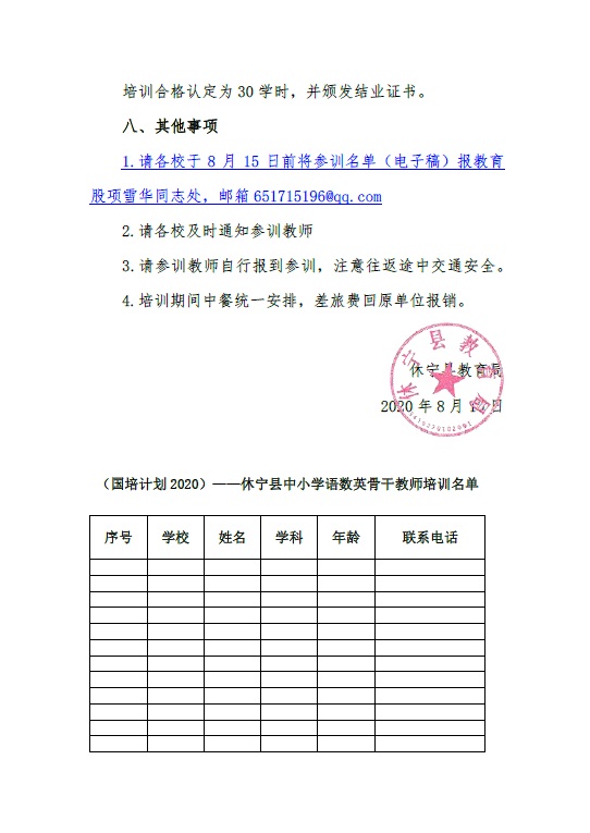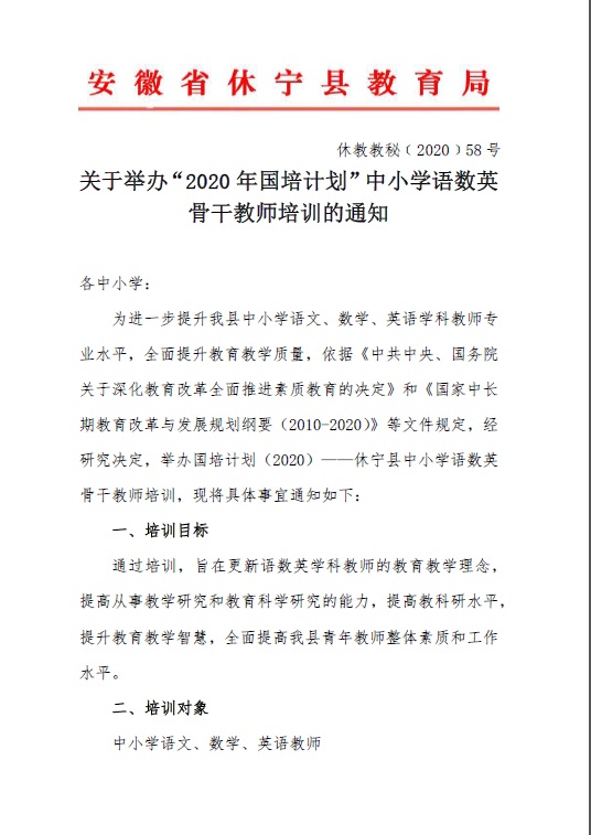 县局:关于举办“2020年国培计划”中小学语数英骨干教师培训的通知