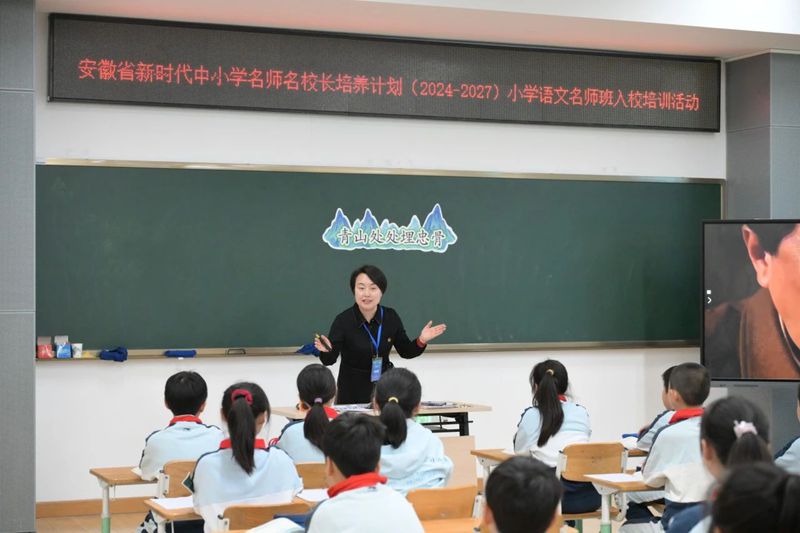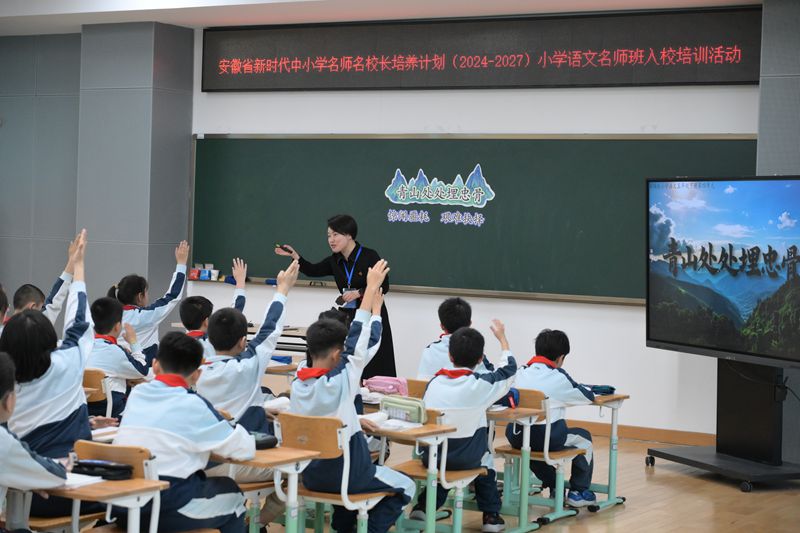 在安徽省新时代中小学名师名校长培养计划(2024 - 2027年)2025年第一次集中研修期间,4月17日,在跟岗研修当日来自安徽省黄山市休宁县海阳第一小学的方素芬老师,以《青山处处埋忠骨》为授课主题,在北京市第一实验小学红莲分校开设了一节聚焦数智技术与语文教育深度融合的公开课,凭借巧妙运用AI数智技术的教学设计,为45位听课教师带来了一充满创新与动的语文课,赢得了广泛赞誉,也为课题《一核五径:数智赋能基地校小学语文“新课标校本精准教研”的实践研究》的深入推进提供了鲜活范例。