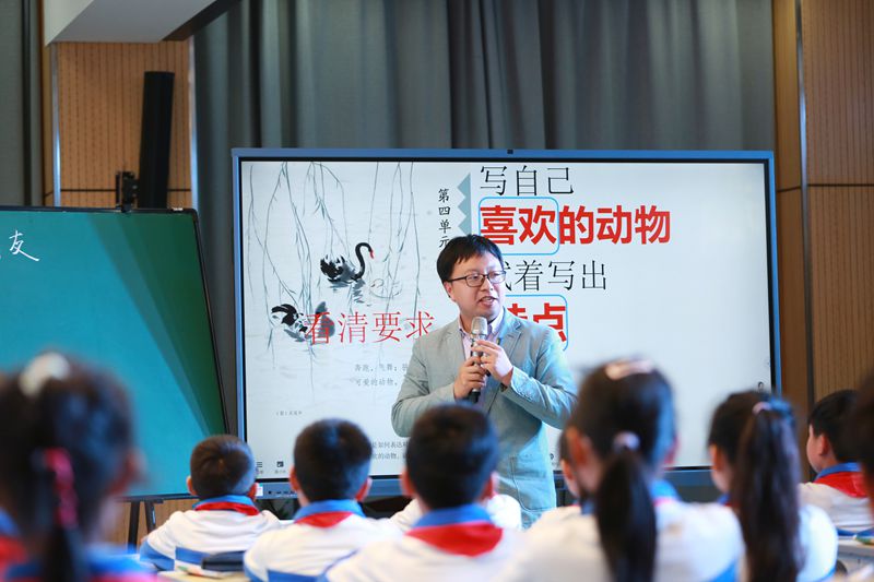 歙县丰乐小学方宁老师执教四年级下册第四单元习作《我的动物朋友》,紧扣“教—学—评”一体化,以生动情境导入,通过范例解析、写作指导与多元评价,引导学生学会在不同情境中从不同方面进行描写的方法,并当场练笔、评改,教学目标有效达成。