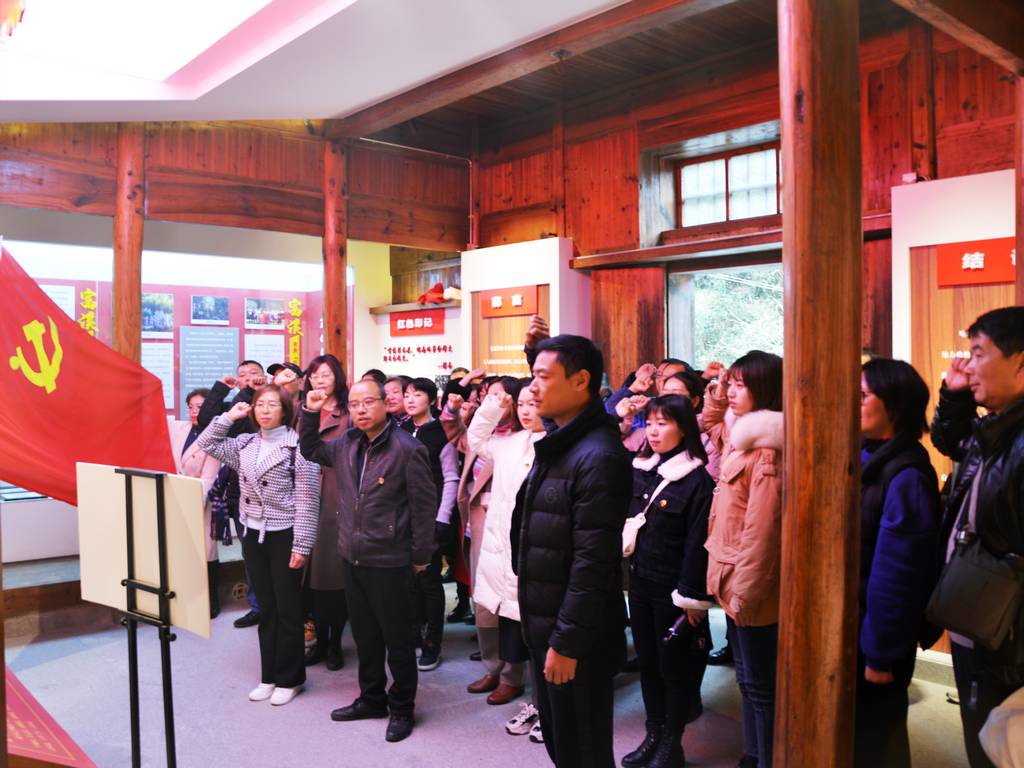 党员同志们在鲜艳党旗的指引下,从百福广场开始,重走红军路,体验“穿过封锁线”“冲出雷区”, 亲身感受那段烽火岁月中的艰难与豪情。在小坞红色记忆馆,聆听了声情并茂的讲解,在了解历史的同时被革命先烈的英勇事迹所感动,也深深地感受到今天美好幸福生活的来之不易。紧接着,全体党员在胡晓宇书记的带领下重温了入党誓词。最后,全体党员在“红色讲堂”观看了宣传片,真切地感受到革命老区顺应时代发展、加快乡村振兴的强劲脉动。