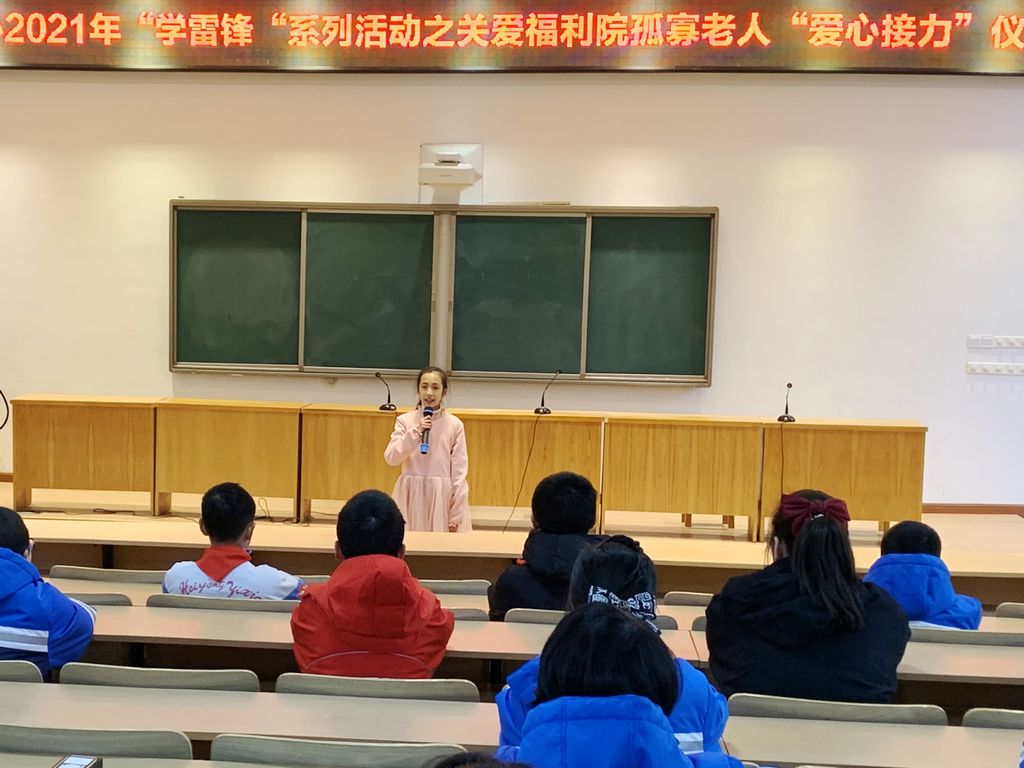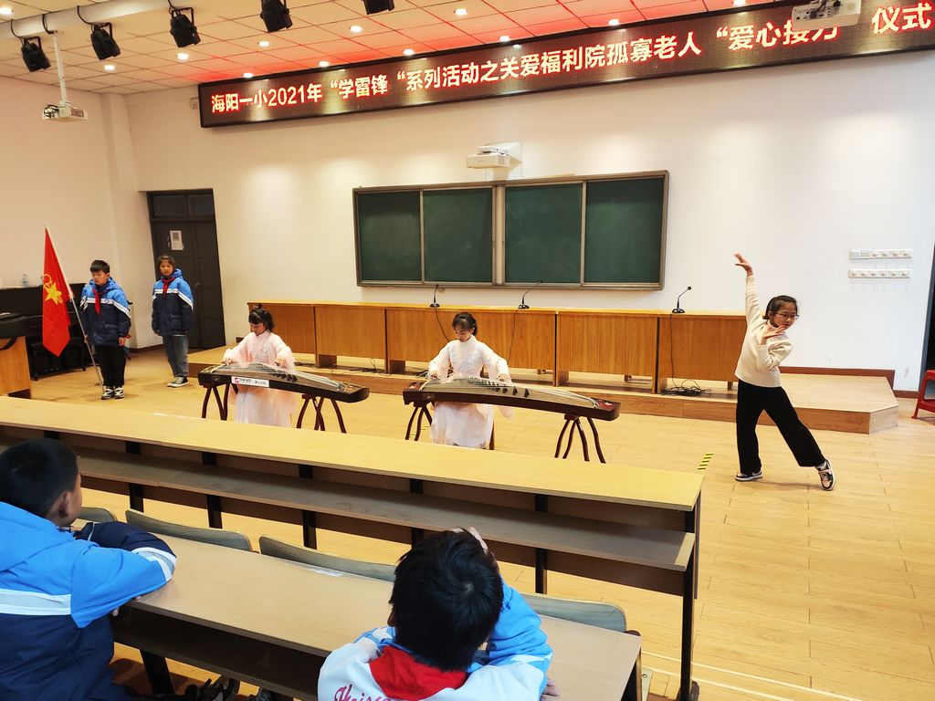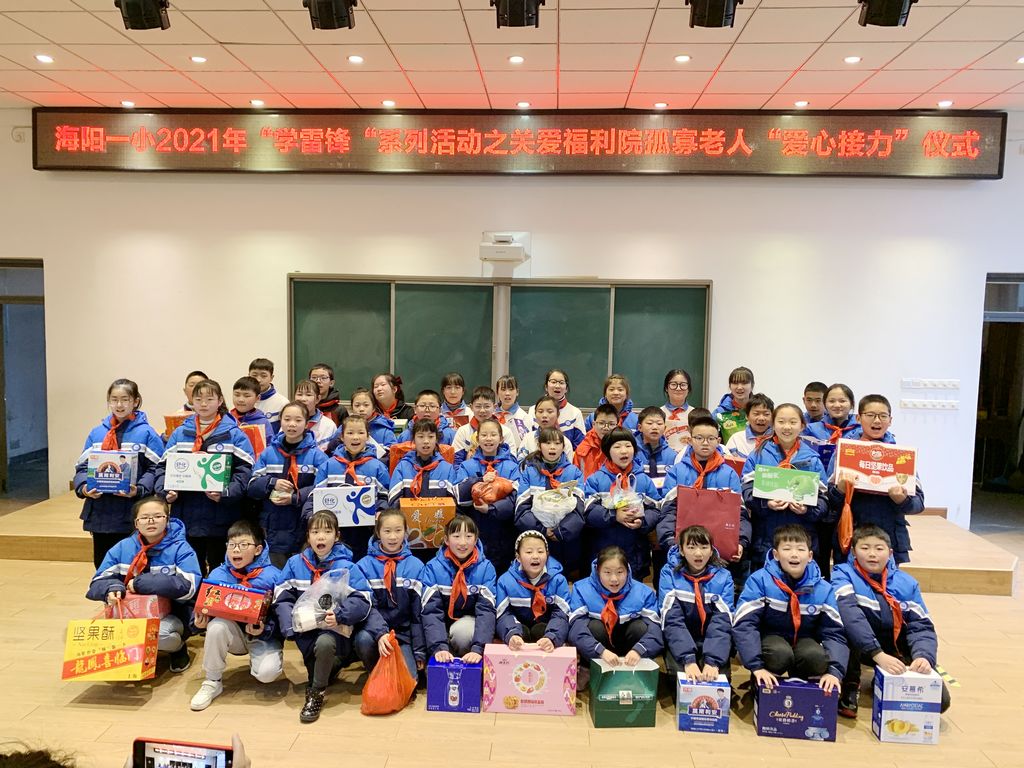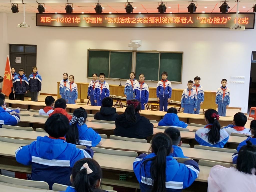 为认真学习贯彻习近平新时代中国特色社会主义思想和党的十九大精神,以培育和践行社会主义核心价值观为根本,从动态活动中展现新时代少先队员传承雷锋精神的风貌,2021年3月3日上午,海阳一小六(1)、五(1)中队50余名少先队员,在学校多媒体教室,开展了一次防疫期间特殊的“学雷锋——爱心接力”活动。