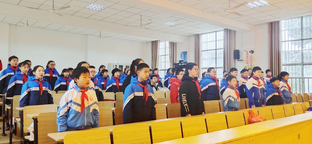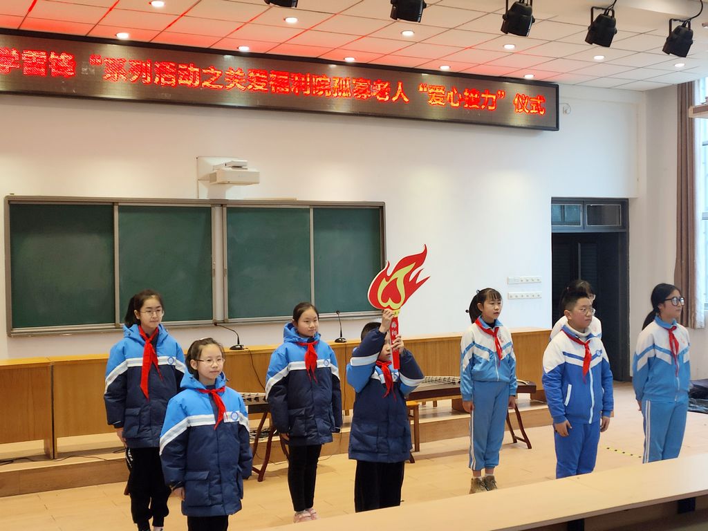 活动在少先队员们庄严的队歌声中拉开序幕。六(1)与五(1)中队进行了简单而不失庄重的“爱心接力”交接仪式,还特别录制了队员们精心准备的节目,有舞蹈、歌曲、讲故事、吉他弹唱、古筝合奏以及朗诵等。孩子们通过录制视频,向老人们表达了深切的祝福。