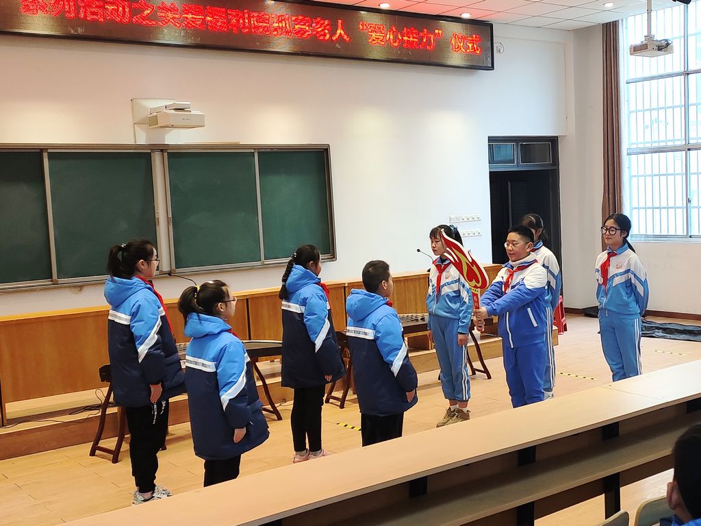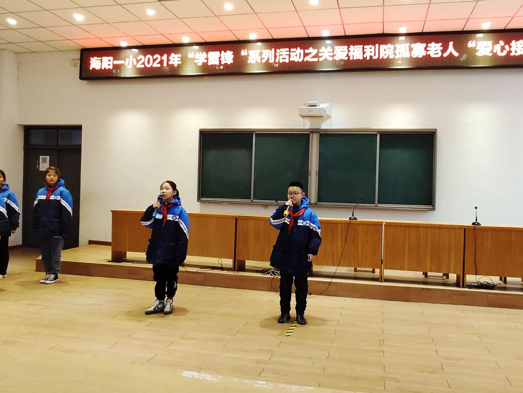 因疫情防控要求,不能前往福利院为孤寡老人当面献爱心,采取了录制活动过程再由少先队员代表前往福利院向老人们敬献礼物和播放录制祝福的形式,开展了海阳一小持续40年从未间断的“爱心接力”活动。