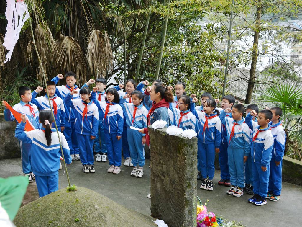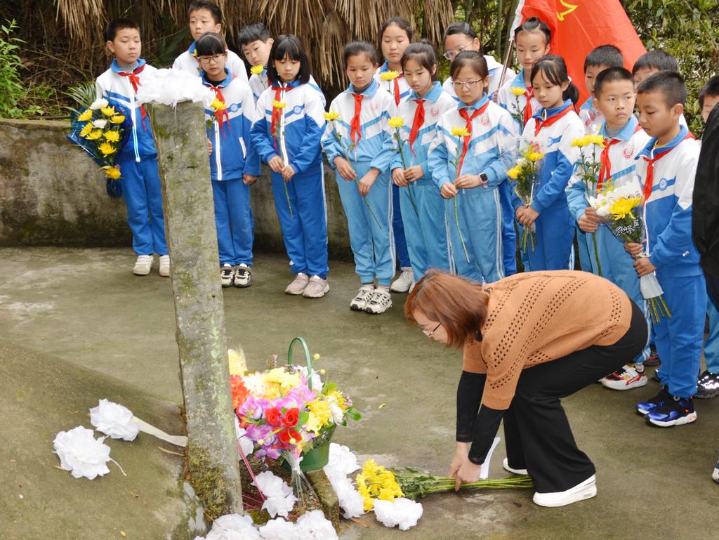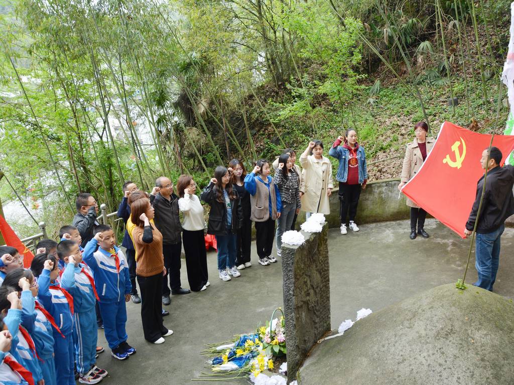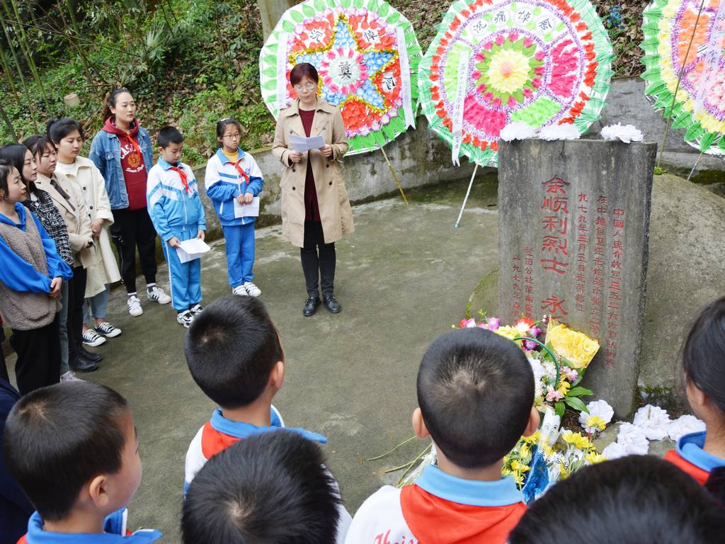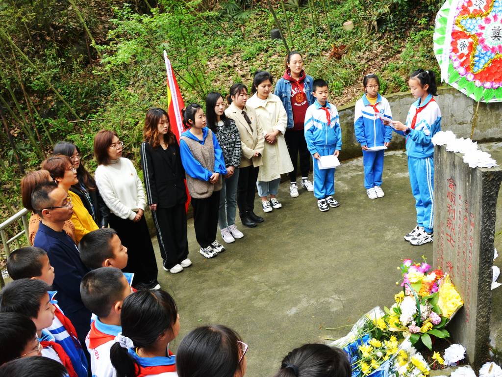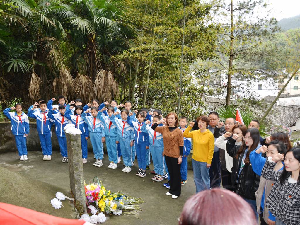 在活动现场,全体少先队员在辅导员江馨老师的带领下重温入队誓词;全体师生在党总支副书记汪霞老师的带领下,在党旗下庄严宣誓。誓言铮铮,铿锵有力,充分表达了对英烈的无比敬仰。