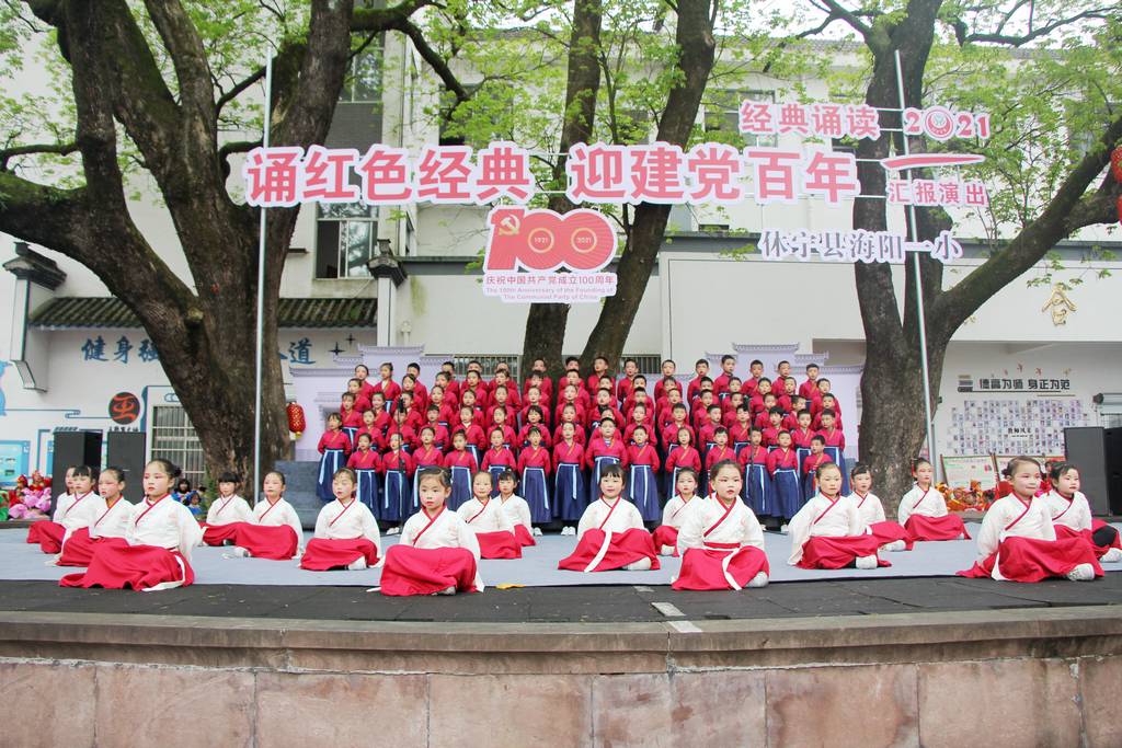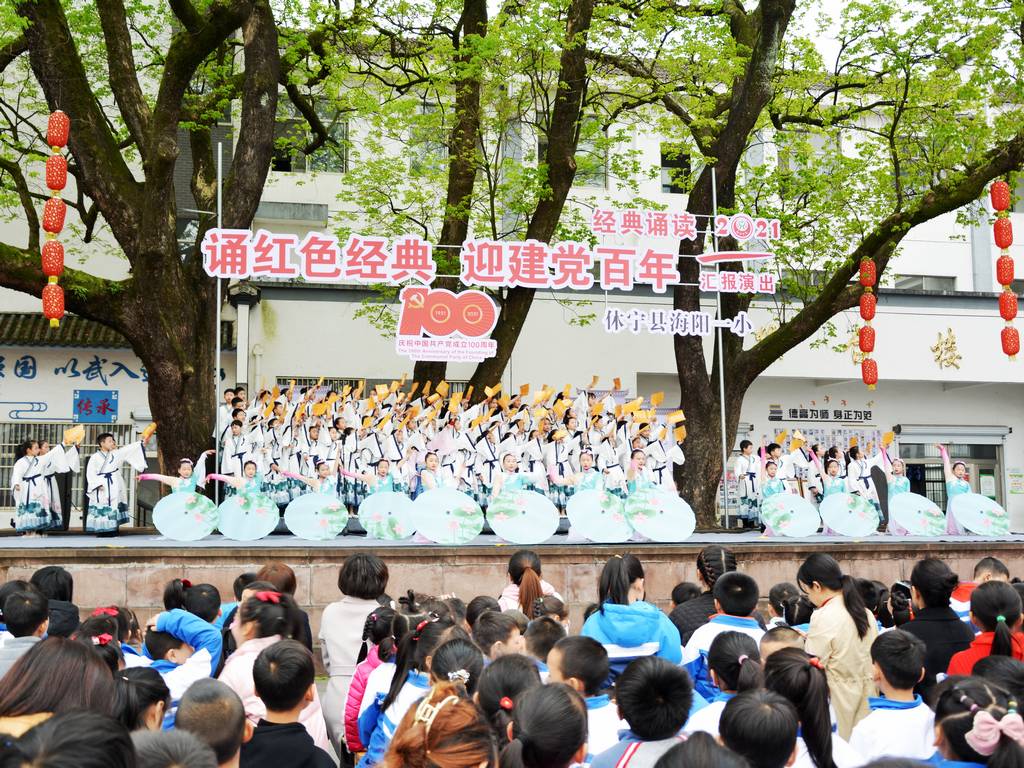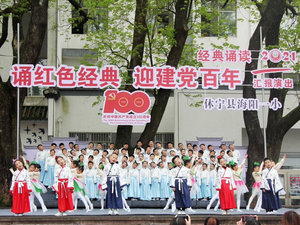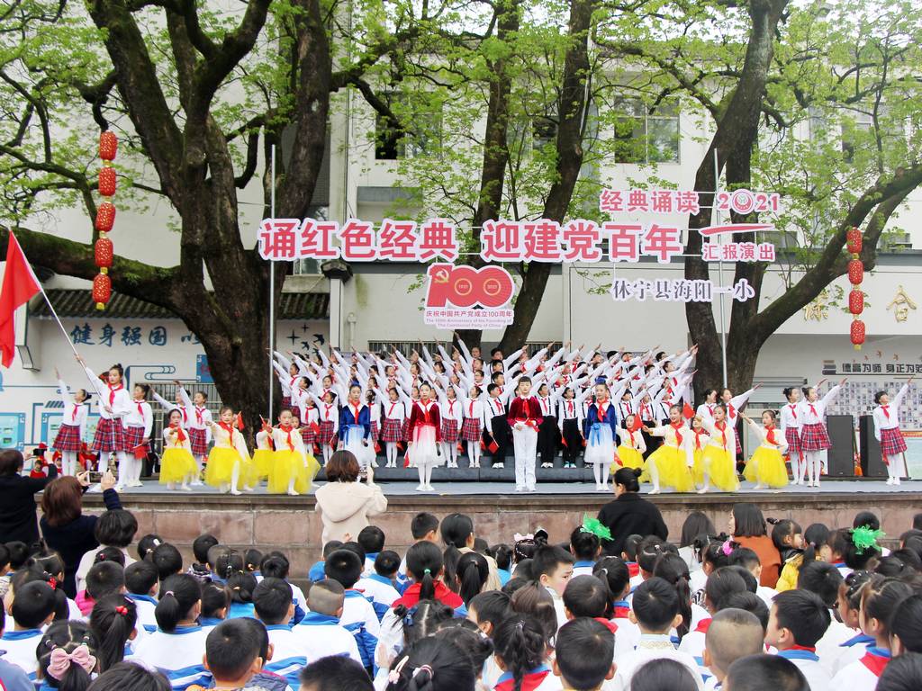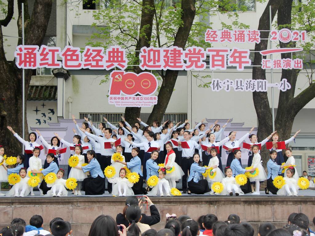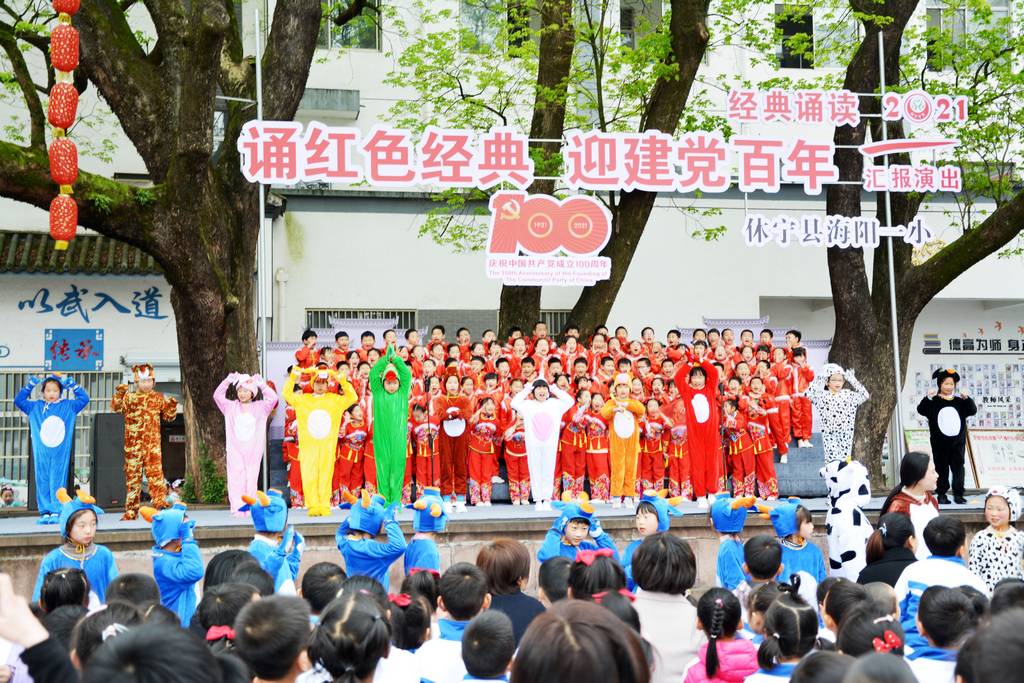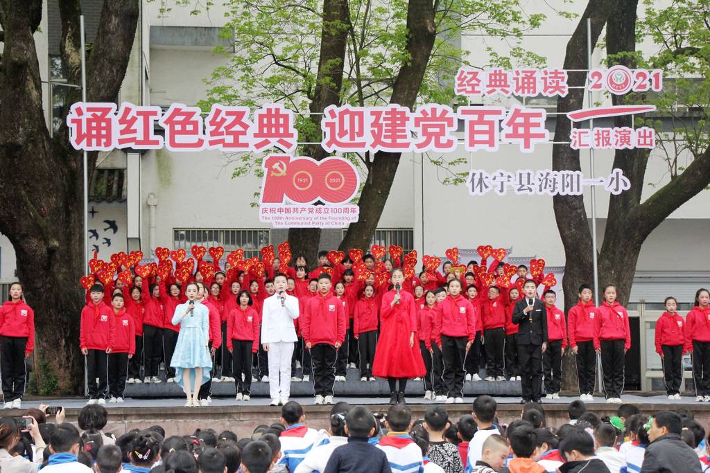 百年风雨兼程,世纪沧桑巨变。为庆祝中国共产党成立100周年,向党的百年华诞献礼,2021年4月8日下午,海阳一小在学校操场举行了“诵红色经典,迎建党百年”经典诵读汇报演出。