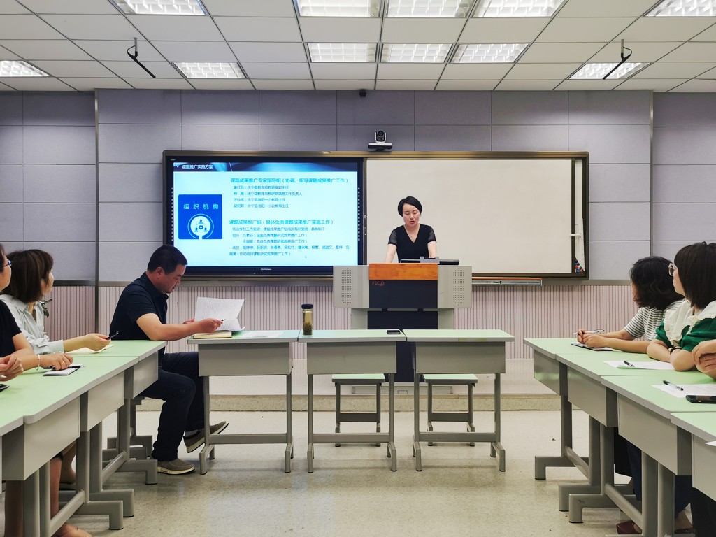 课题成果推广负责人方素芬就实施方案进行了解读。在前期课题研究成果的基础上,课题推广组将立足课堂教学实践,解决教学实践中出现的新问题、新现象,满足新课程改革和教学实践的需求,促进教师专业发展和学生知识成长,营造科研兴校的氛围,提高教育教学质量,进一步巩固并发挥课题研究成果的作用。随后,课题成果推广组代表阮昕妍老师做表态发言。
