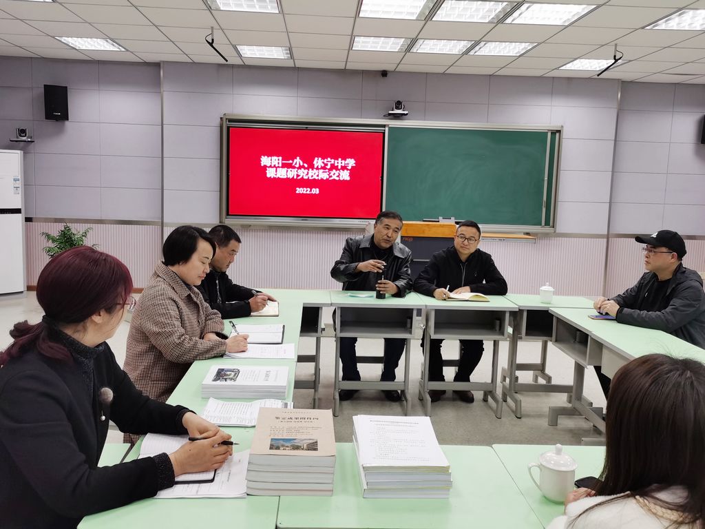2022年3月18日下午,休宁中学高二年级组课题组成员一行四人来到海阳一小进行课题研讨校际交流。