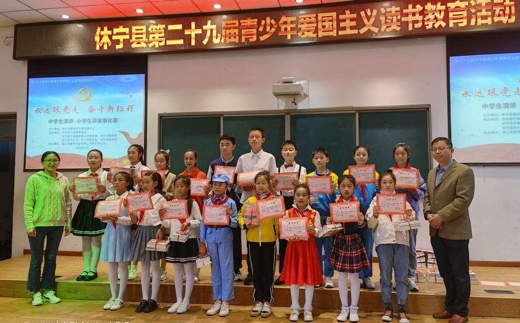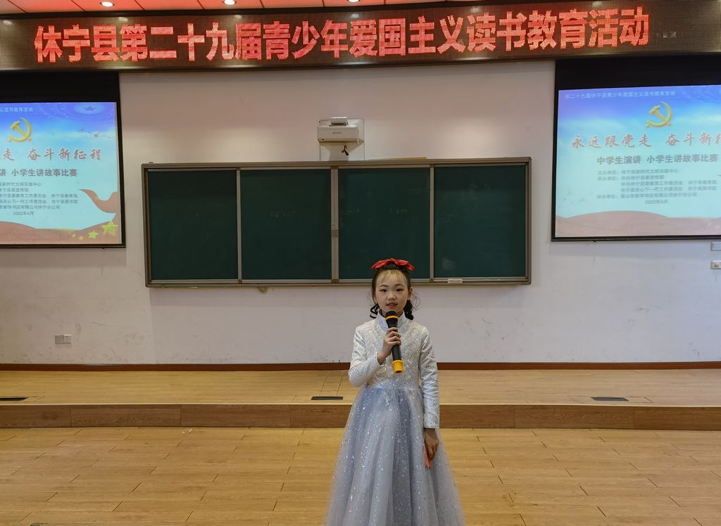 在刚刚结束的休宁县爱国主义读书教育活动小学生讲故事比赛中,海阳一小刘佳妮、汪研硕两位选手精神饱满,声情并茂,绘声绘色,在众多参赛者中脱颖而出,分别荣获一、二等奖。小主持人叶一漪同学从容大方,表现也非常出色。据悉,刘佳妮同学将代表休宁县参加黄山市小学生讲故事比赛。在此,向他们表示热烈的祝贺,也向付出辛勤劳动的指导老师们表示衷心的感谢!