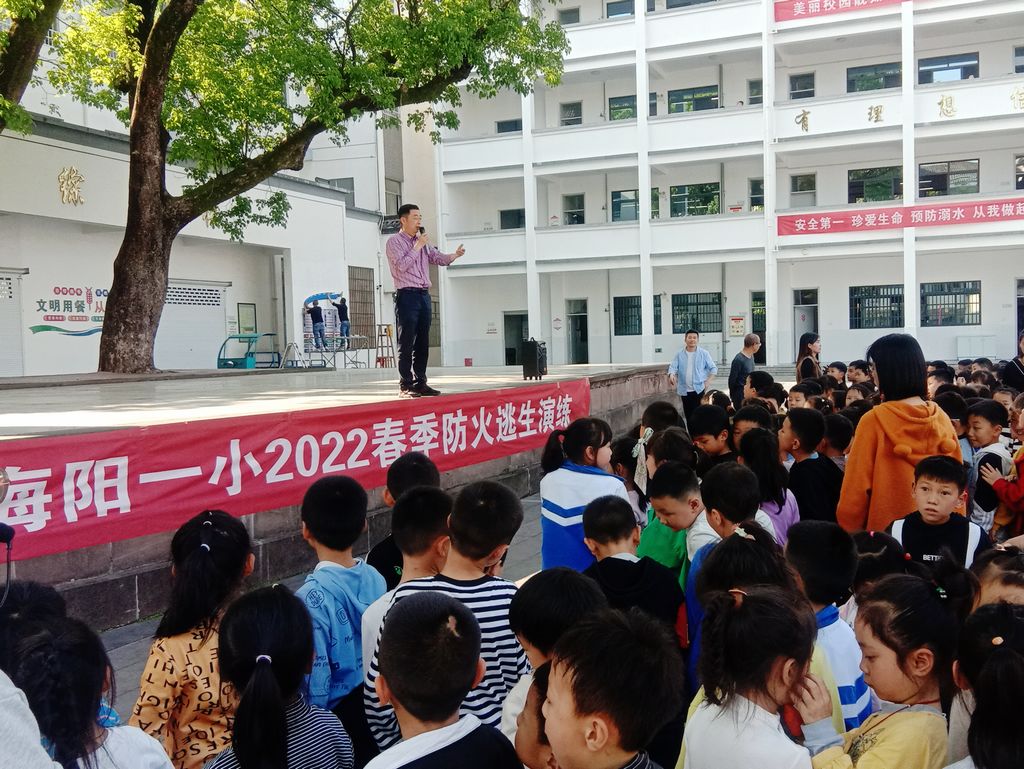 为进一步加强校园消防安全工作,切实提高全体师生的消防安全意识,提高师生防火灾及突发事件应急处理能力,有效地预防和处置突发性火险事故,保障师生生命安全。经学校领导班子精心研究和精密部署。海阳一小在4月24日下午课后服务时间,开展了一年级“消防应急疏散演练”活动。