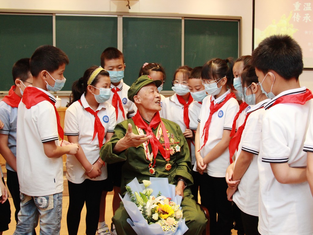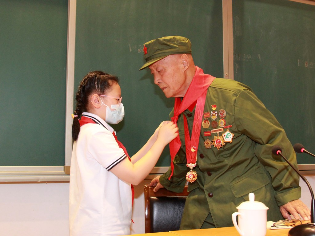 在活动现场,少先队员代表为老人佩戴红领巾并献上鲜花,表达敬仰之情。老人动情地讲述了至今难忘的那激情燃烧岁月血与火的故事,那一个又一个英勇而惊险的战斗场面仿佛就在眼前,孩子们认真倾听,用自己的掌声和专注表达了对老兵的崇敬。
