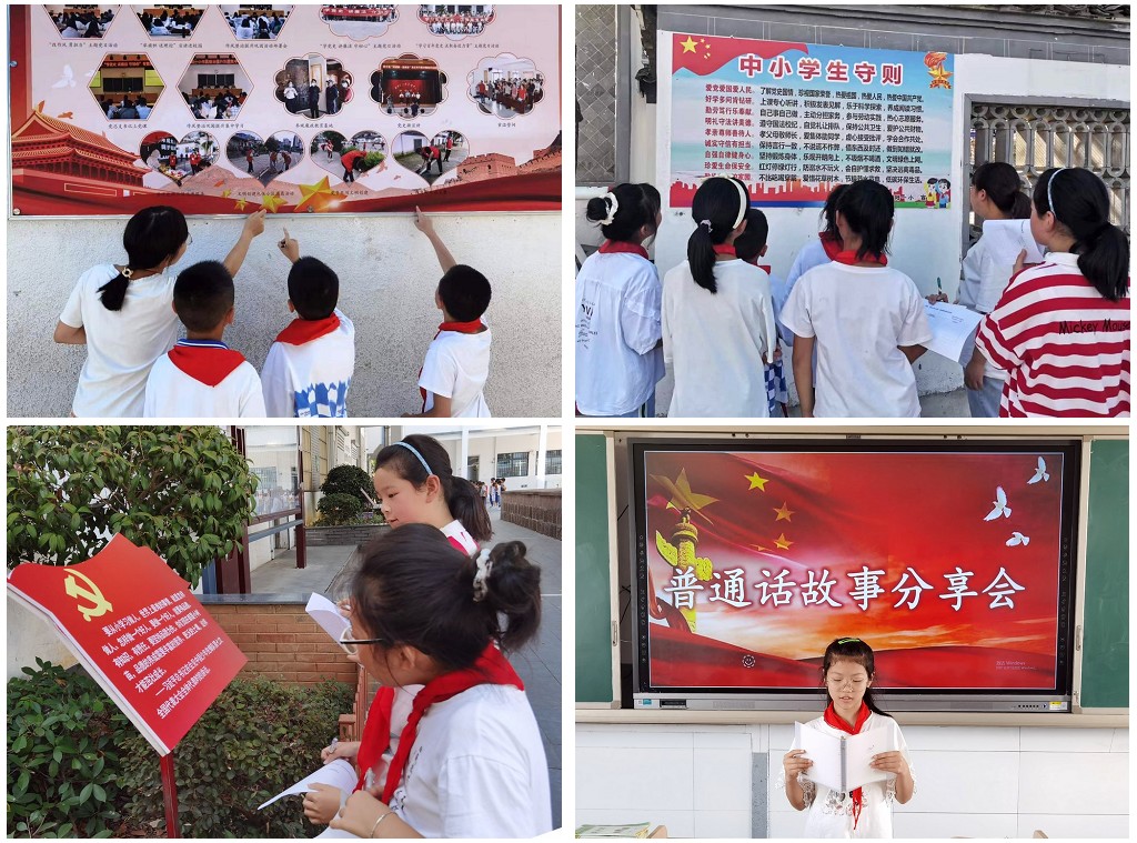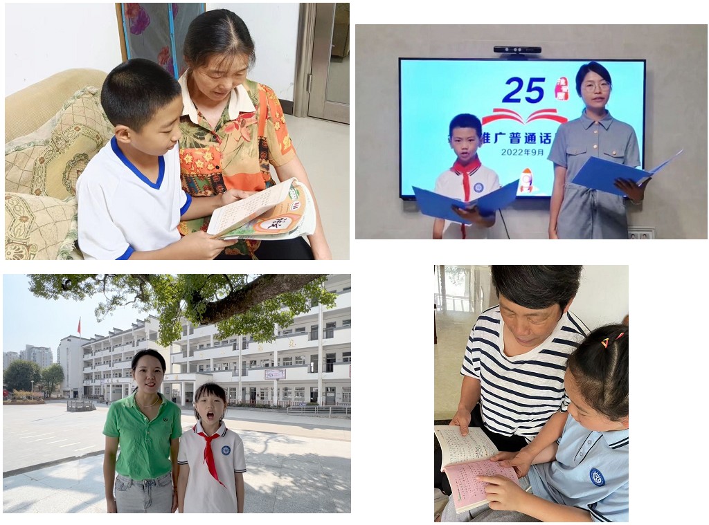 本次活动主要分为校内和校外两大阵地进行。在校内,我们通过国旗下讲话、班会“我是中国娃,爱说普通话”、普通话故事分享会、主题黑板报等形式积极教育学生说普通话,做文明人,同时加强教师们的语言文字应用水平和能力。在校外,我们开展了我是“小先生”、汉字纠错“啄木鸟”行动、亲子诵读等宣传活动,进一步增强了全民语言规范意识。