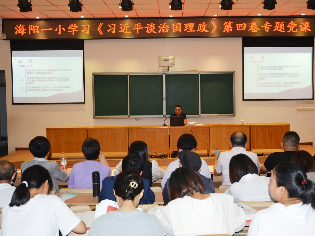 活动伊始,张胜利书记为全体党员上了一堂生动的学习《习近平谈治国理政》第四卷专题党课。他从深刻领会习近平总书记重要讲话和《习近平谈治国理政》第四卷的重大意义;准确把握主要精神、丰富内涵和实践要求;在学懂弄通做实上下功夫,切实把学习成果转化为奋进新征程、建功新时代的强大动力三个方面展开阐述,并结合学校实际,号召全体党员教师要加强自身学习,踔厉奋发、勇毅前行,坚守立德树人、教书育人的初心使命,培根铸魂,为党育人,为国育才。