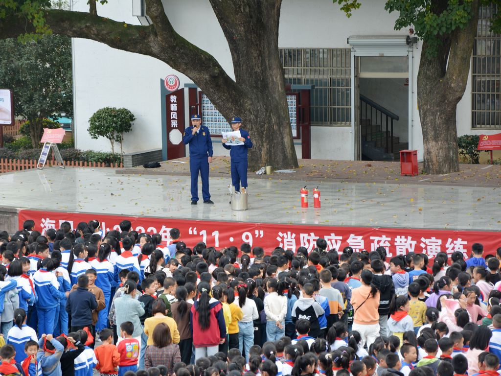 为进一步推进我校消防安全工作,认真贯彻党的二十大精神,深刻领会习近平总书记关于安全生产、防灾减灾等应急管理工作重要论述,严格落实省、市、县消防安全工作会议精神,11月9日下午三时,海阳一小全体师生在县消防大队的指导下开展了“119”消防应急疏散演练活动。