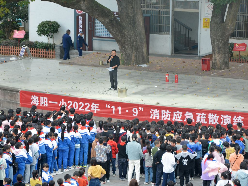 演练总指挥海阳一小校长张胜利同志对本次活动进行总结,强调:学校消防安全是头等大事,我们要开展各种生动活泼的消防宣传教育活动,不断提升师生消防安全素质,夯实校园消防安全基础,营造良好的校园安全环境,消除火灾隐患,共建平安校园 。