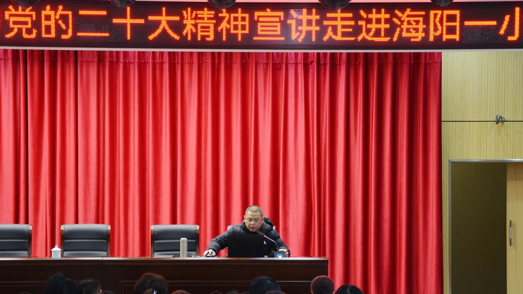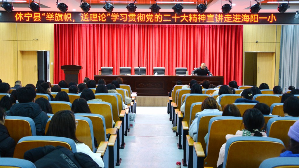 2月4日上午,休宁县“举旗帜·送理论”学习贯彻党的二十大精神示范宣讲报告会走进海阳一小,县级宣讲团成员、休宁中学教师盛文祥面向全体教师展开精彩宣讲。