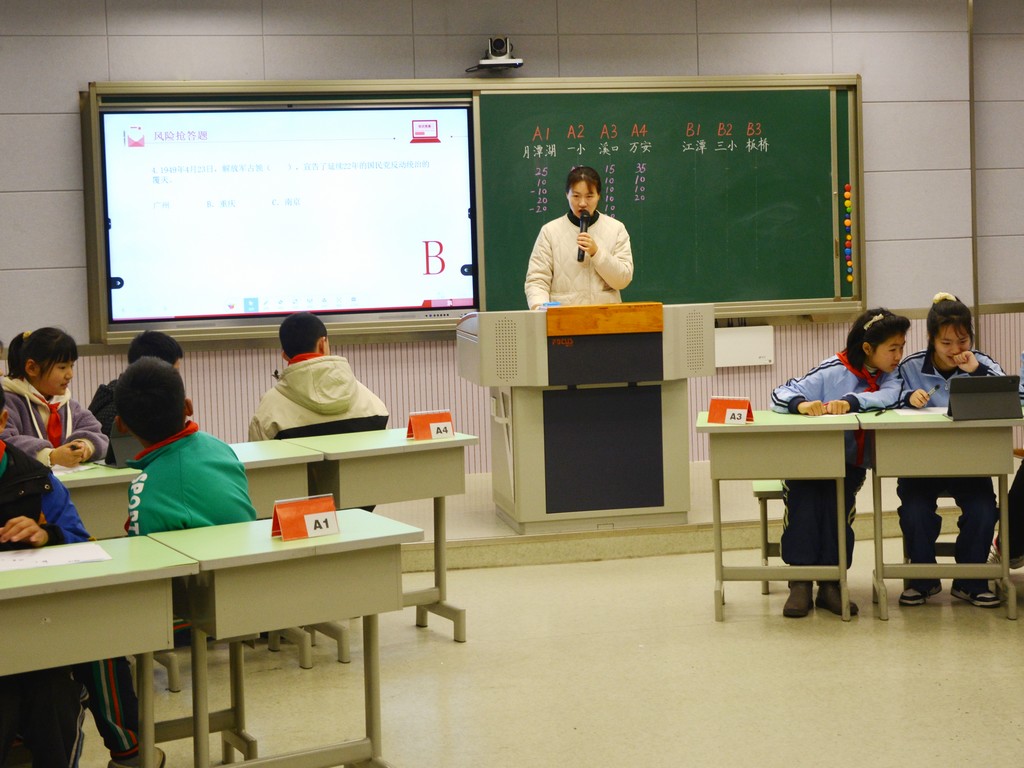 本次选拔赛内容涵盖了“四史”知识(党史、新中国史、改革开放史、社会主义发展史),还结合实际渗透了不同历史阶段涌现出的民族脊梁、英雄人物、革命史及地标知识等,内容丰富、形式多样。比赛运用科大讯飞智慧课堂系统,以现场答题形式开展,现场答题为必答题、抢答题和风险题,各校选手全神贯注,沉着应对,冷静答题。