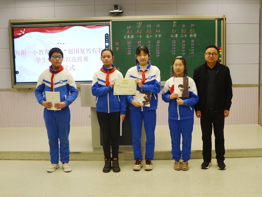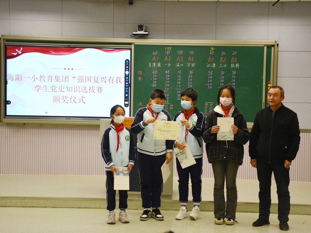 团体比赛中,海阳一小获得一等奖,江潭小学获得二等奖,溪口小学、万安小学、月潭湖小学、海阳三小、板桥小学等获得三等奖。个人比赛中,来自海阳一小的王可可、孙绮琴、海阳三小的方晓雯、溪口小学的程宇含等四名同学表现突出,被推荐组队参加县里比赛。