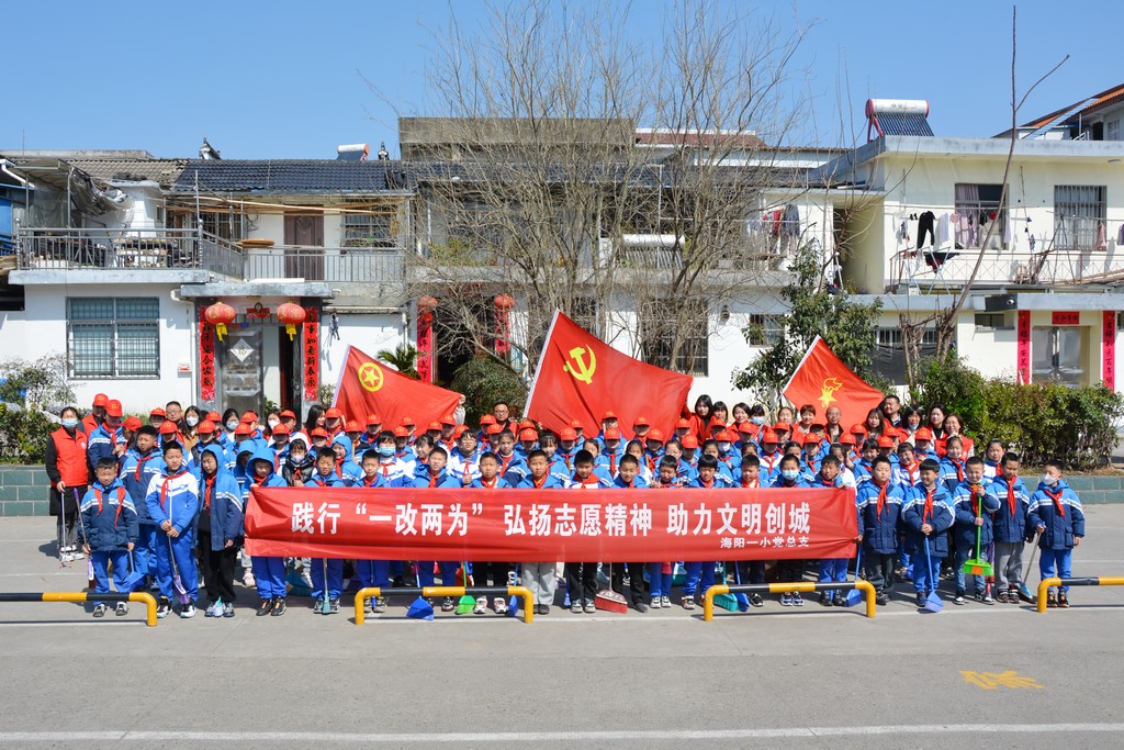 为推动“一改两为”落地生根,进一步弘扬志愿服务精神,3月13日,海阳一小党总支组织部分党员团员以及少先队员在包保小区开展了“践行一改两为,弘扬志愿精神,助力文明创城”志愿服务活动。