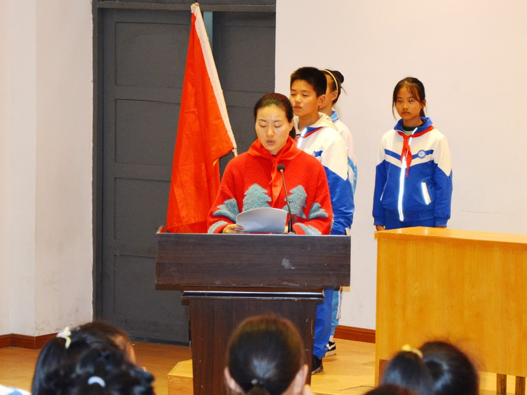 会议由少先队大队辅导员潘艺姝主持,在庄严的出旗仪式中,本次大会拉开了帷幕。