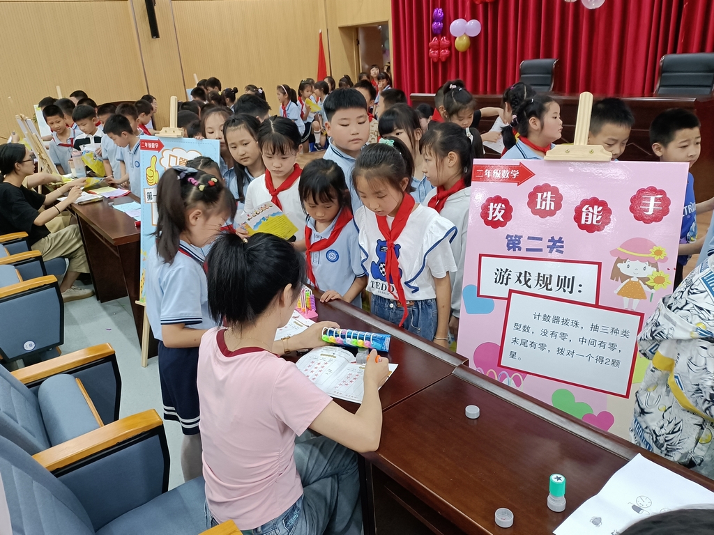 数学组老师则整合教材,结合实际,从口算、动手操作、解决问题三个方向出发,开展了“口算小精灵”“经济小管家”“拨珠能手”“盲盒猜猜”等畅游数学智慧王国活动,把“乐学数学,会学数学”作为重要目的,将数学知识融于活动中,培养了孩子们的观察能力、综合思维能力和解决问题的能力。