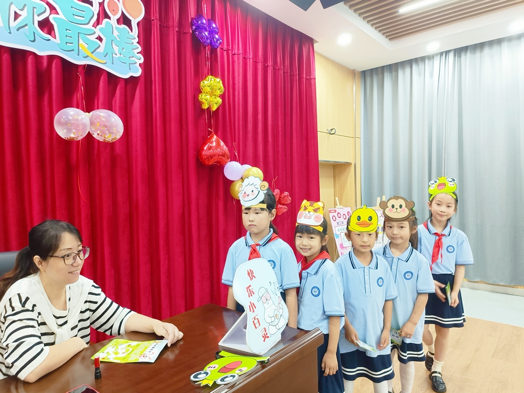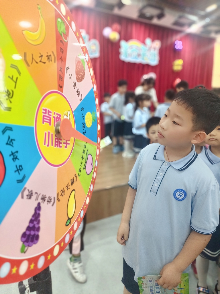 活动中,语文组老师从“拼音、识字、诵读、口语交际”四个方面出发,设计了“字词冒险岛”“国学大转盘”“语言表达园”“口语交际刮刮乐”等关卡。孩子们手拿闯关卡,根据每关随机抽取的测评内容,通过口头或肢体表达的方式完成闯关,检测了孩子们的观察能力、口语表达能力和思维能力,让孩子们在玩中学,在乐中思,在语文的学习乐园中摘取知识的果实,享受收获的喜悦。