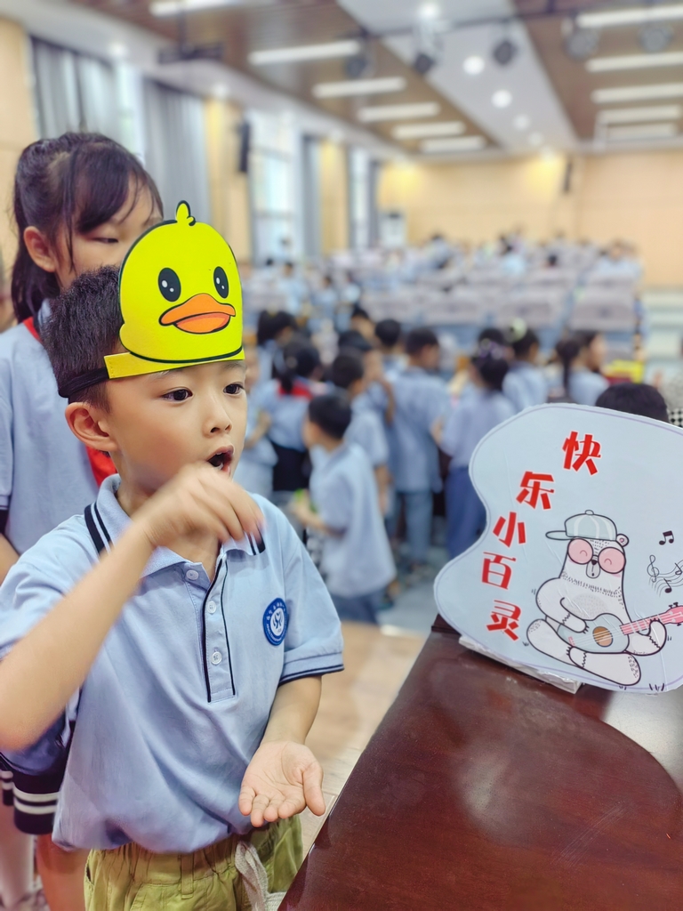 综合组的音、体、美老师则根据学科特点,结合学生的特性设计了“欢乐小球员”“快乐小百灵”两个活动。孩子们戴上动物头饰,一边拍皮球,一边演唱本学期所学的歌曲。孩子们毫不怯场,用灵动的歌声、跳动的皮球,认真的模样、甜美的笑容、自信的神态,彰显出奋发向上的精气神。