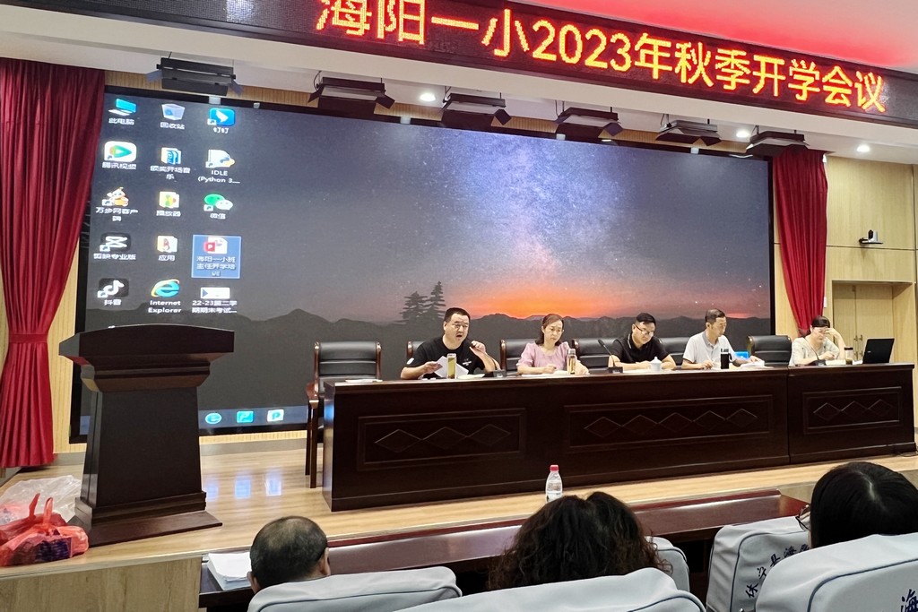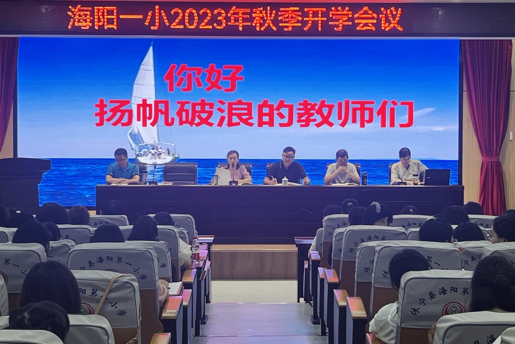 秋雨拂炎热,清凉入心田。8月30日上午,海阳一小召开了2023年秋季开学工作会议。会议由汪霞副校长主持,全体教师参加会议。