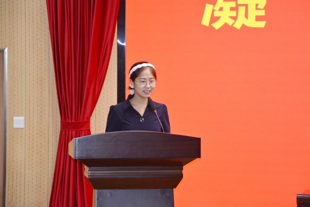 叶晴老师代表新进教师进行了表态发言,表示将会竭尽所能,用踏实的态度、青春的热情和坚韧的意志一步一个脚印地努力工作,为海阳一小的建设添砖加瓦。