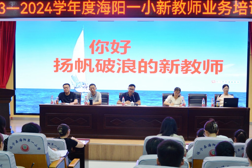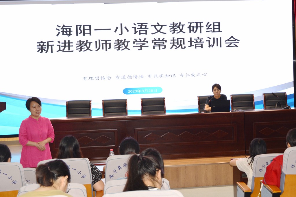 为了提升新教师职业素养,促进专业成长,加深新教师对学校教育教学理念的认识,提高新教师教学管理能力,经过精心策划、全面部署,海阳一小于8月26日在学校多功能报告厅举办了新教师岗前培训活动。旨在通过一系列的职前培训活动,让新教师快速融入集体,淬炼本领,蜕变成长,卓越发展。