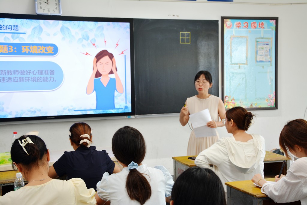 最后,语文、数学、英语三位教研组长分组对新进教师进行了教育教学常规培训。