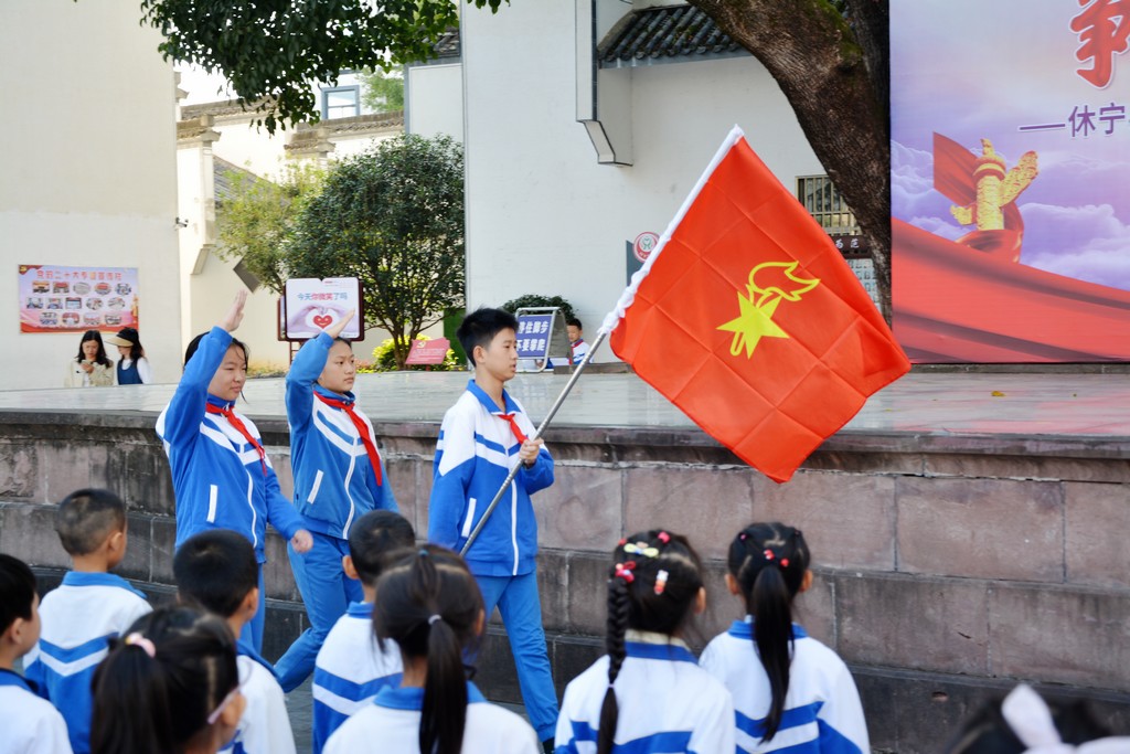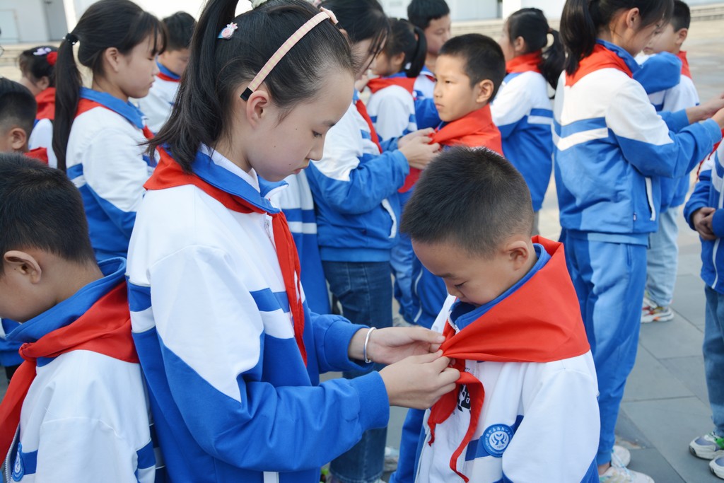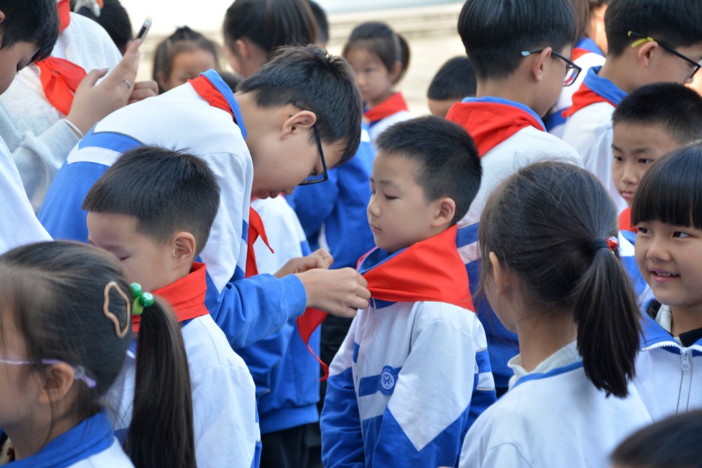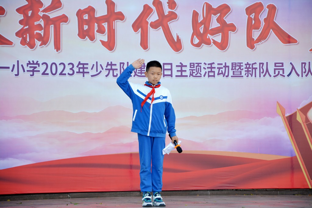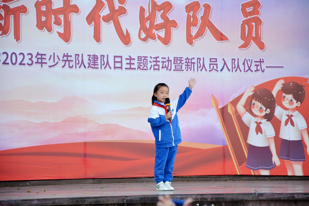 伴随着铿锵有力的出旗曲,中国少年先锋队队旗在旗手的护卫下缓缓入场。随后,建队日活动有序推进,齐唱队歌、宣读新队员名单、为新队员佩戴红领巾、新队员宣誓、新老队员代表发言、呼号……一步步将活动推向高潮。