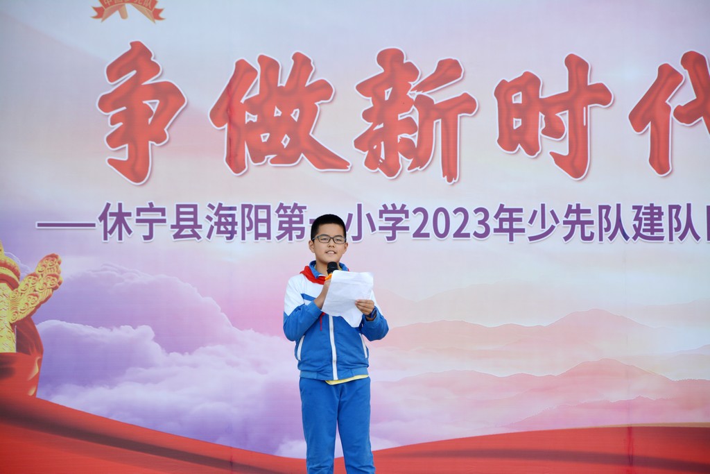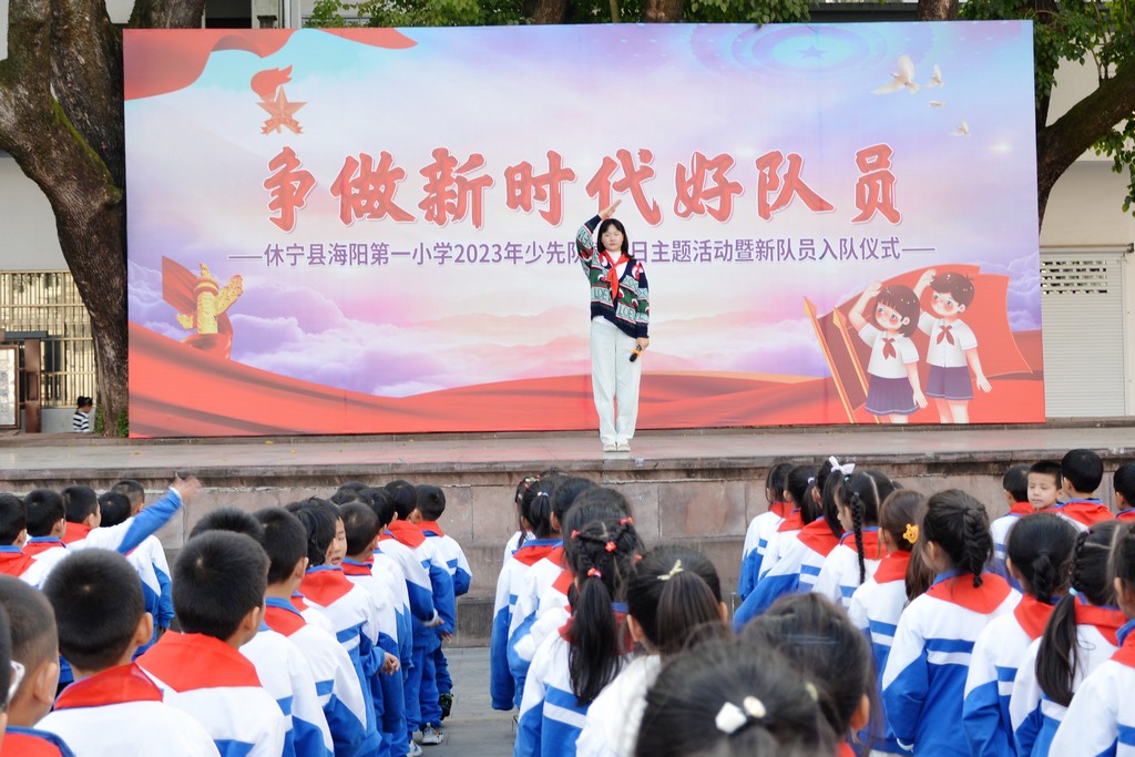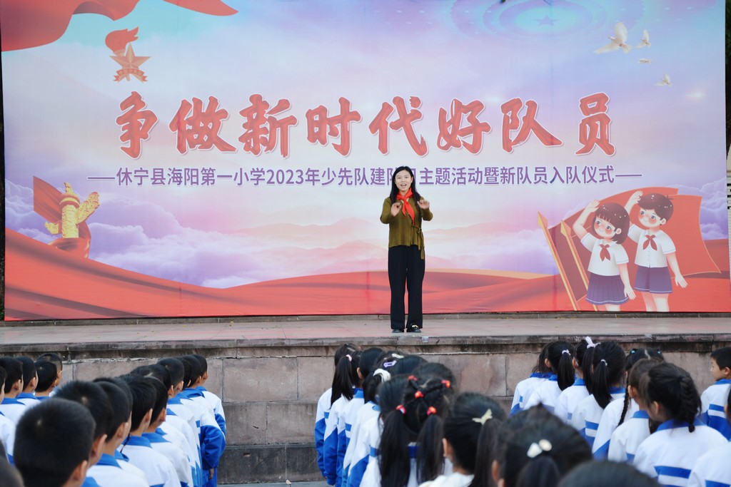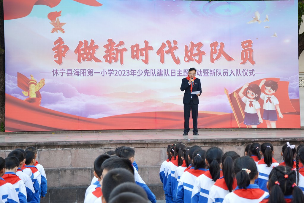 为深入贯彻党的二十大精神,落实立德树人根本任务,进一步强化学校少先队组织建设,引导广大青少年树立听党话、跟党走的坚定信念,在第74个少先队建队日到来之际,休宁县海阳一小开展了“争做新时代好队员”主题建队日活动暨二年级第二批新队员入队仪式。