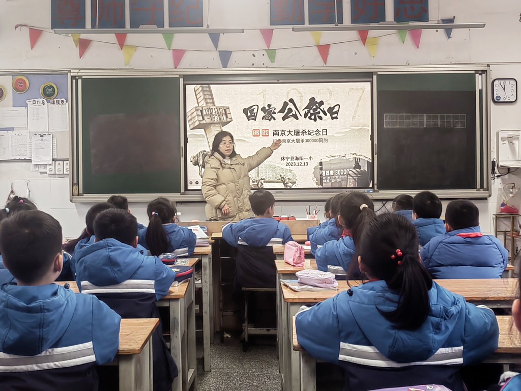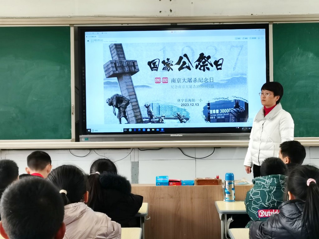 2023年12月13日,是第十个国家公祭日。为铭记历史、勿忘国耻,海阳一小举行了国家公祭日纪念活动。