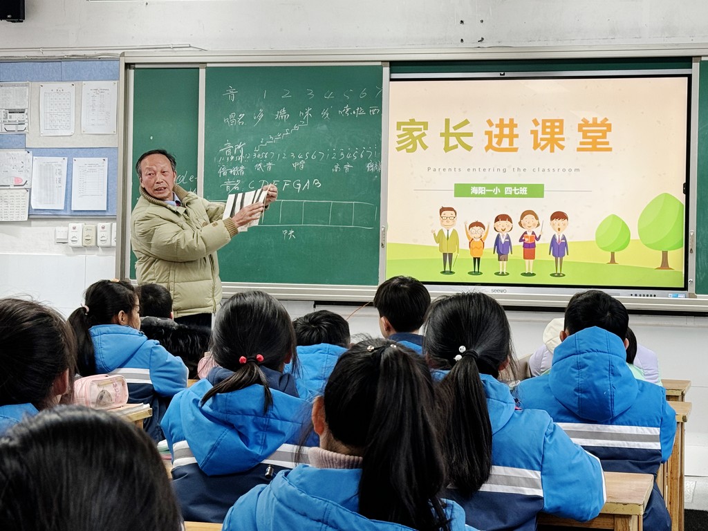 最美的声音,是家校同频的回响;最好的教育,是家校共育的互动。2023年12月20日,海阳一小成功举办“家长进课堂”主题活动。开展这次活动旨在进一步丰富校园生活,拓展课堂教育的形式,充分利用优质的家长资源,实现家校教育的优势互补,同时,开阔孩子视野、增长孩子的见识,拉近孩子、老师、家长之间的距离,真正达到“双向奔赴 共育花开”的教育成效。