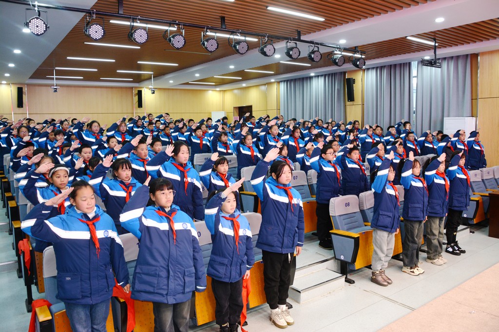伴随着铿锵有力的出旗曲,会场内的队旗高高飘扬,代表们的目光紧随着队旗,庄严地行队礼,全体少先队员高唱《中国少年先锋队队歌》,嘹亮的歌声,唱出了每位队员心中的自豪与骄傲。