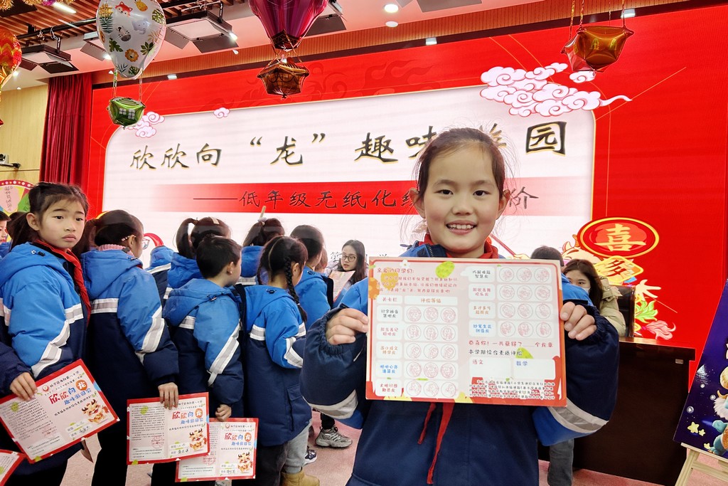 为深入贯彻落实国家“双减”政策,全面推进“五育”并举,切实减轻学生学业负担,积极探索改革评价方式,科学评估学生综合素养,促进学生全面发展,1月18日,“欣欣向‘龙’趣味游园”低年级无纸化评价活动在休宁县海阳第一小学多功能报告厅和录播教室举行。此次活动面向教育集团,海阳一小和海阳三小一二年级全体师生共同参与。