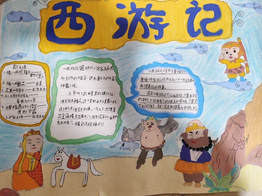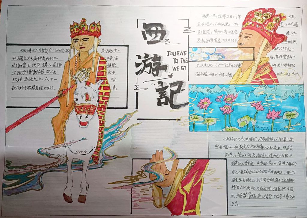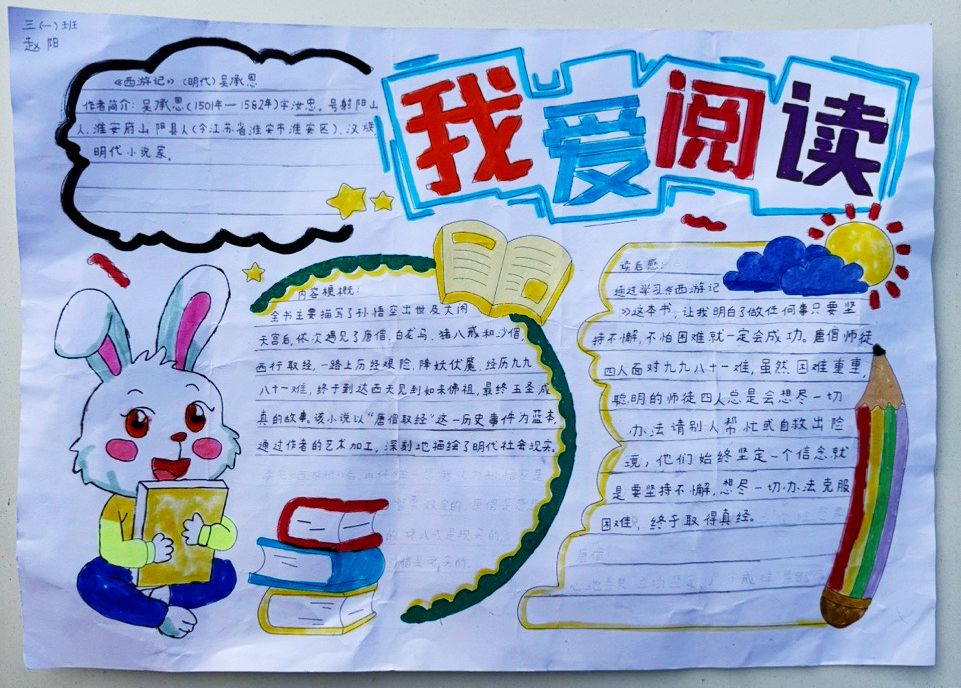 “读万卷书,行万里路”。阅读可以带大家畅游世界,探索上下五千年的历史文化。因此,三至六年级的老师推荐学生阅读中外经典名著,与大师对话,与高尚为伍,与经典为友,与博览同行。书香弥漫,同学们在读书中快乐成长,制作出一张张图文并茂的手抄报,下面请欣赏同学们的精彩展示。