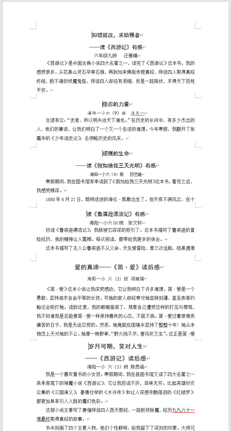 假期已接近尾声,阅读后,同学们写下了自己的读后感,分享自己的阅读体验和感受,同学们用自己的话描述了书中的精彩情节、人物形象和自己的阅读感悟,同时也表现出自己的写作能力和思考能力。