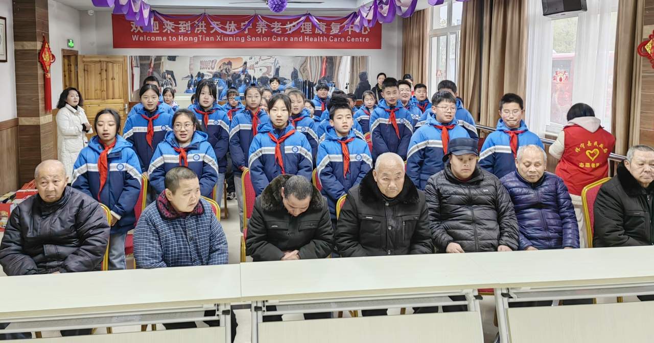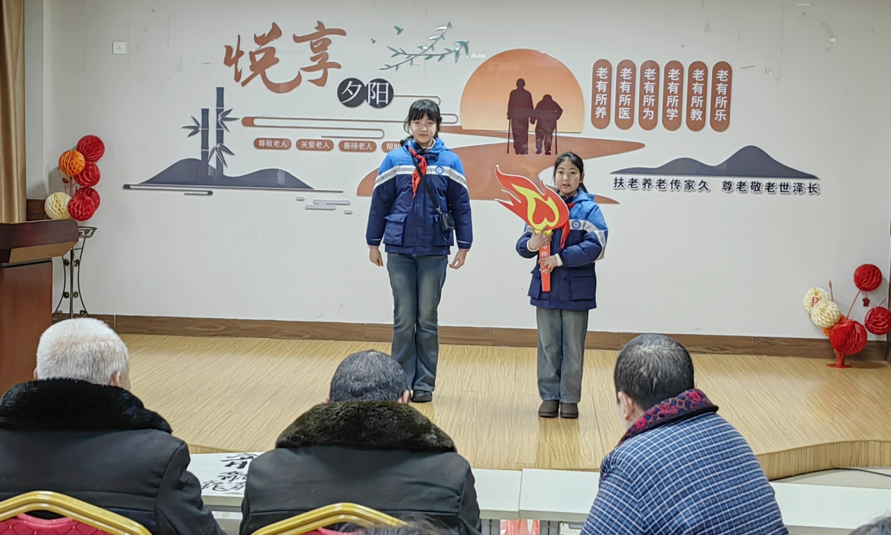 小志愿者们和老人们聊天、唠家常,为老人们送上慰问礼品,祝老人们身体健康,福气满满。孩子们用自己的方式表达对老人们满满的爱和尊敬,平日里清静的福利院一片欢声笑语,暖意融融。