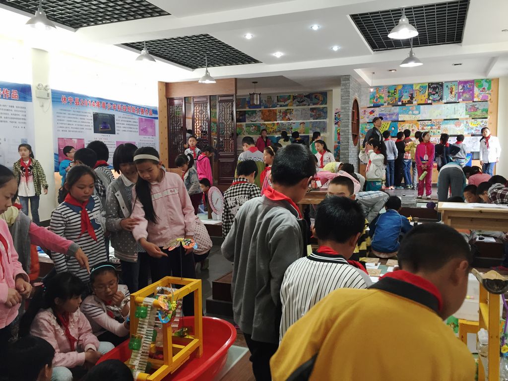 5月12日上午,在县教育局的安排下,海阳一小五年级全体师生参观了2014年度休宁县科技创新作品展览。