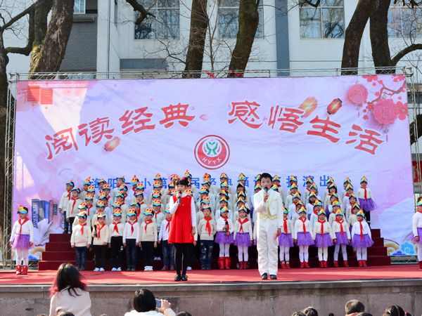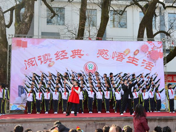 《春姑娘与熊》、《神奇的钥匙》、《子路借米》、《猴王出世》、《李勉葬银》、《用心灵感受幸福》……一个个经典小故事让大家感受到语言文字的无穷魅力;《鸡仔迎新年》、《笠翁对韵》、《红色的童话》、《追月》、《感恩》、《中华少年》……一个个精彩的集体诵读博得老师和同学们的阵阵掌声。