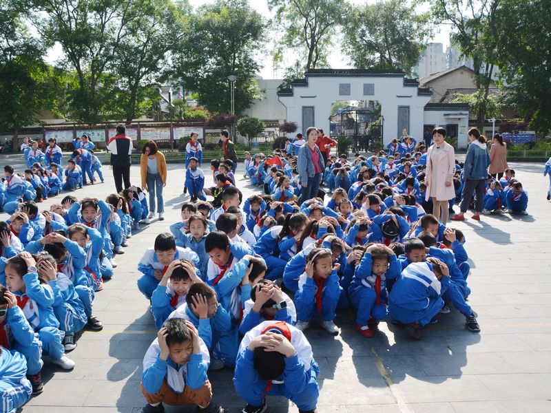 上午八时二十分,平静的校园突然响起警报声,各位老师迅速到位,各班主任老师带领学生双手抱头弯腰撤离。各楼层导护教师协助安抚学生情绪,指导学生沿着学校指定逃生楼梯口撤离,有序的到达操场地带。整个逃生过程历时3分钟48秒,全校两千多名师生安全撤离。整个过程基本做到先到先下,无强行冲、挤行为,动作迅速,不吵闹,不慌乱。